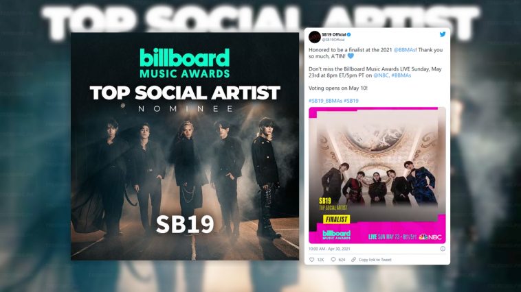 SB19 is now the first Filipino group/act among the nominees for the reputable for 2021 Billboard Music Awards BBMA’s Top Social Artist category.